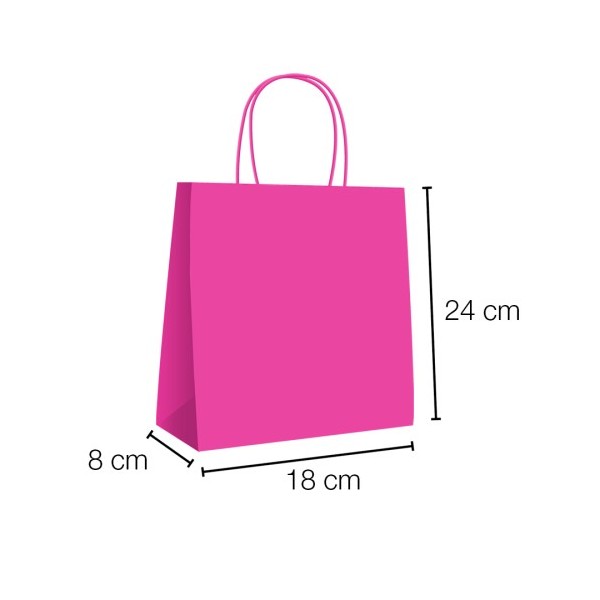 Bolsas papel kraft de asa rizada rosa 18x8x24 cm