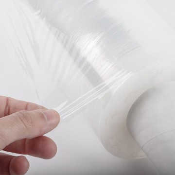 Transparent stretch mini-film in three-layer cast polyethylene (three-layer), flexible, elastic and tear-resistant.